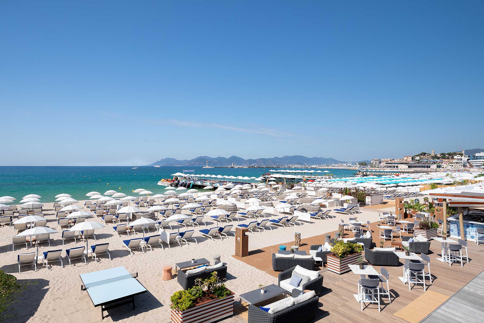The perfect sunny getaway in the heart of Cannes. Located in front of the JW Marriott Cannes, the Palais Stephanie Beach offers an incredible sea view on the Lérins Islands and the Esterel mountains.